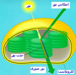 كلروپلاست (chloro plast) که شامل : كلروفيل (سبز) |